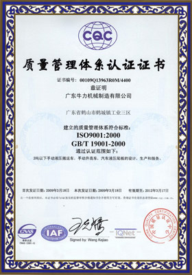 公司先后獲得了ISO9001質量管理體系認證,歐洲CE/GS認證,SGS國際認證服務公司認證審核,國家質監總局頒發的特種設備制造許可證,廣東省高新技術企業認證,廣東省工程技術研究中心等。