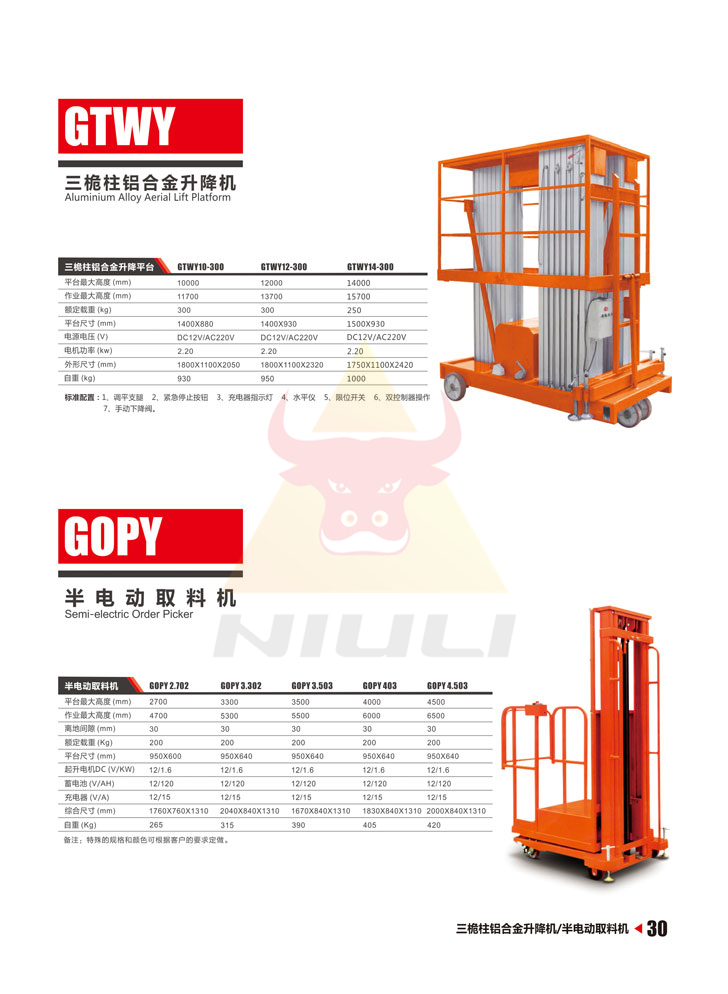 | 平臺最大高度(mm) | 2720 | 3300 | 3500 | 4000 | 4500 |